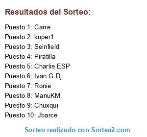 Lista de participantes: Carre, Ronie, Seinfield, Piratilla, Charlie ESP, Jbarce, kuper1, ManuKM, Ivan G Dj, Chuxqui.