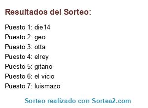 Lista de participantes: geo, el vicio, elrey, gitano, luismazo, die14, otta.