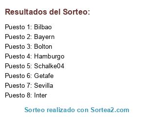 Lista de participantes: Getafe, Sevilla, Bolton, Bilbao, Inter, Schalke04, Bayern, Hamburgo.