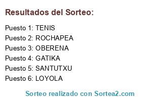 Lista de participantes: SANTUTXU, ROCHAPEA, TENIS, GATIKA, OBERENA, LOYOLA.