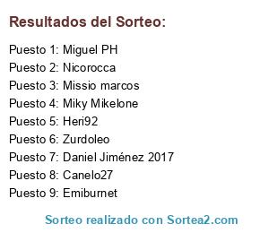 Lista de participantes: Canelo27, Nicorocca, Miguel PH, Missio marcos, Heri92, Emiburnet, Miky Mikelone, Daniel Jiménez 2017, Zurdoleo.