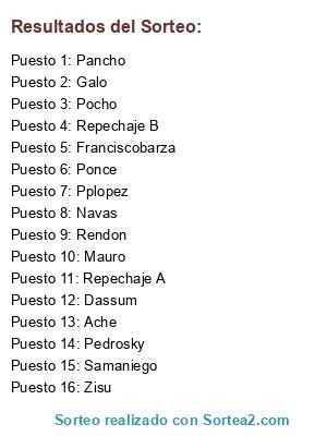 Resultados del sorteo: