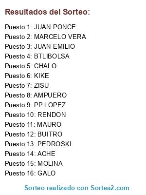 Resultados del sorteo: