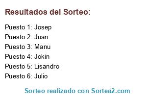 Lista de participantes: Jokin, Josep, Manu, Juan, Julio, Lisandro.