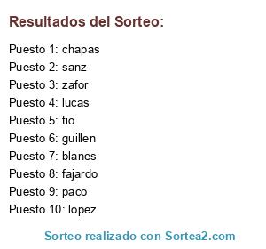 Lista de participantes: lucas, blanes, chapas, paco, zafor, guillen, sanz, lopez, fajardo, tio.