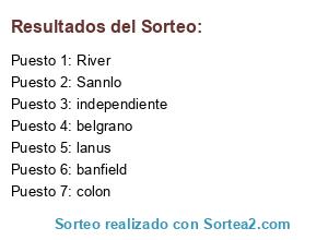 Lista de participantes: River, Sannlo, independiente, lanus, banfield, colon, belgrano.