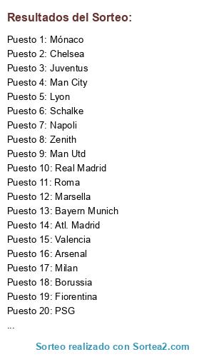 Resultados del sorteo: