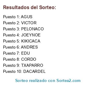 Lista de participantes: VICTOR, AGUS, EDU, DACARDEL, CORDO, KIKICACA, JOEYNOE, ANDRES, TXAPARRO, PELONACO.