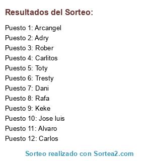 Lista de participantes: Keke, Tresty, Adry, Toty, Alvaro, Carlitos, Carlos, Rafa, Rober, Dani, Jose luis, Arcangel.