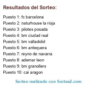 Lista de participantes: bm ciudad real, fc barcelona, ademar leon, bm valladolid, reyno de navarra, bm granollers, cai aragon, naturhouse la rioja, pilotes posada, bm antequera.