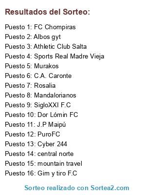 Lista de participantes: FC Chompiras, Sports Real Madre Vieja, Rosalia, Murakos, J.P Maipú, Cyber 244, C.A. Caronte, Mandalorianos, Gim y tiro F.C, SigloXXI F.C, central norte, Albos gyt, mountain travel, Dor Lómin FC, Athletic Club Salta, PuroFC.