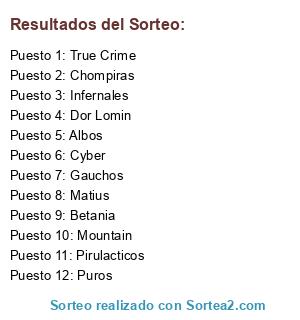 Lista de participantes: Pirulacticos, Puros, Mountain, Betania, True Crime, Cyber, Chompiras, Gauchos, Matius, Infernales, Dor Lomin, Albos.
