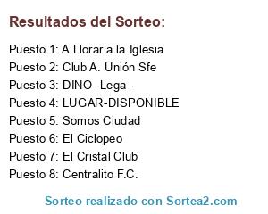 Lista de participantes: El Cristal Club, DINO- Lega - , El Ciclopeo , Somos Ciudad , Club A. Unión Sfe , A Llorar a la Iglesia, Centralito F.C. , LUGAR-DISPONIBLE.