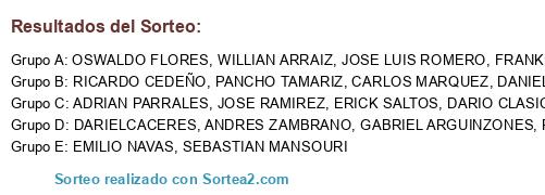 Lista de participantes: ADRIAN PARRALES, ANDRES ZAMBRANO, CARLOS MARQUEZ, DANIEL SUAREZ, DARIELCACERES, DARIO CLASICO, EMILIO NAVAS, ERICK SALTOS, FRANKLIN ROMERO, GABRIEL ARGUINZONES, JOSE RAMIREZ, JOSE LUIS ROMERO, OSWALDO FLORES, PANCHO TAMARIZ, ROBERT PRIMEX, RICARDO CEDEÑO, SEBASTIAN MANSOURI, WILLIAN ARRAIZ.