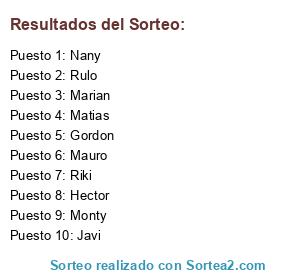 Resultados del sorteo: