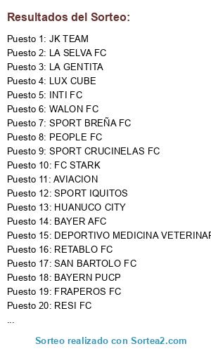 EL PRESENTE SORTEO DE REALIZARÁ CON LA CERTIFICACIÓN DE SORTEA2. EL FIXTURE SERÁ ENVIADO AL MEDIODIA DEL VIERNES 21 DE OCTUBRE