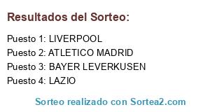 Lista de participantes: ATLETICO MADRID, BAYER LEVERKUSEN, LIVERPOOL, LAZIO.