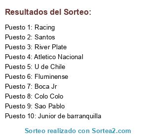 Lista de participantes: Colo Colo, U de Chile, Atletico Nacional, Sao Pablo, Santos, Racing, Boca Jr, River Plate, Junior de barranquilla, Fluminense.