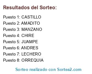 Lista de participantes: CHIRE, JUAMPE, AMADITO, ANDRES, CASTILLO, LECHERO, ORREQUIA, MANZANO.