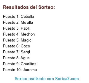 Lista de participantes: Cebolla, Juanma, Sergi, Charlitos, Movilla, Pabli, Agus, Coco, Mechon, Magic.
