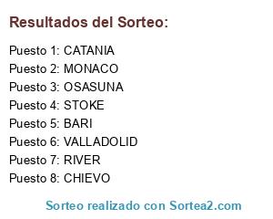 Lista de participantes: OSASUNA, STOKE, CATANIA, RIVER, CHIEVO, VALLADOLID, MONACO, BARI.