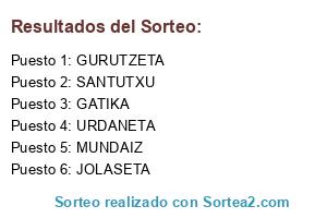 Lista de participantes: SANTUTXU, URDANETA, GATIKA, GURUTZETA, MUNDAIZ, JOLASETA.