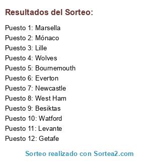 Lista de participantes: Everton, Mónaco, Wolves, Lille, Marsella, West Ham, Newcastle, Getafe, Watford, Levante, Besiktas, Bournemouth.