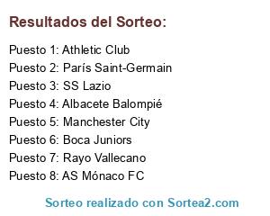 Lista de participantes: Albacete Balompié, AS Mónaco FC, Athletic Club, Boca Juniors, Manchester City, París Saint-Germain, Rayo Vallecano, SS Lazio.