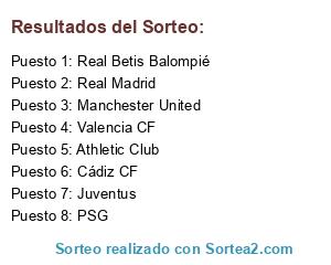 Lista de participantes: Cádiz CF, Juventus, Real Betis Balompié, Athletic Club, Manchester United, PSG, Real Madrid, Valencia CF.