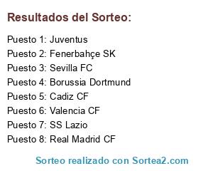 Lista de participantes: Borussia Dortmund, Cadiz CF, Fenerbahçe SK, Juventus, Real Madrid CF, Sevilla FC, SS Lazio, Valencia CF.
