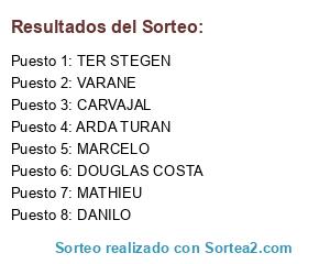 Lista de participantes: DANILO, CARVAJAL, DOUGLAS COSTA, VARANE, TER STEGEN, MARCELO, MATHIEU, ARDA TURAN.