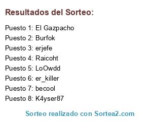 Lista de participantes: El Gazpacho, Raicoht, er_killer, Burfok, LoOwdd, erjefe, K4yser87, becool.