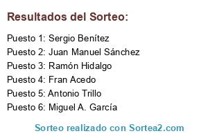 Lista de participantes: Miguel A. García, Juan Manuel Sánchez, Ramón Hidalgo, Sergio Benítez, Fran Acedo, Antonio Trillo.