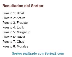 Lista de participantes: Frausto, Uziel, Chuy, David, Margarito, Morales, Ercik, Arturo.