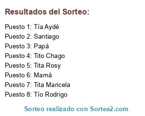 Lista de participantes: Tita Rosy, Tito Chago, Tita Maricela, Tío Rodrigo, Tía Aydé, Mamá, Papá, Santiago.