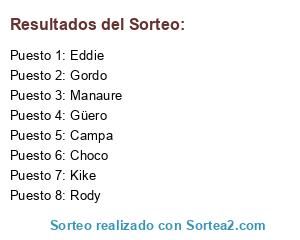 Resultados del sorteo: