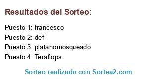 Lista de participantes: PACHANGA, mixguel, Teraflops, francesco, pechito, M.I.C.K.Y., Carlos D, platanomosqueado, MR.OZIO, gobahubert, falto, Aerosoul, def, Antua, El Bananero, rolfsito, rob, $tar, Angelus Hybridum, st_noodle, Megaton.