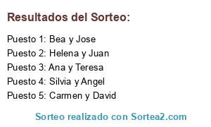 Lista de participantes: Bea y Jose, Carmen y David, Ana y Teresa, Silvia y Angel, Helena y Juan.