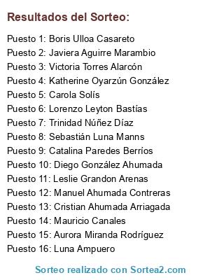 Lista de participantes: Paz Cassorla Orellana, Paz Cassorla Orellana, Paz Cassorla Orellana, Paz Cassorla Orellana, Paz Cassorla Orellana, Paz Cassorla Orellana, Paz Cassorla Orellana, Paz Cassorla Orellana, Paz Cassorla Orellana, Paz Cassorla Orellana, Yessenia Pastene Díaz, Yessenia Pastene Díaz, Yessenia Pastene Díaz, Aurora Miranda Rodríguez, Aurora Miranda Rodríguez, Aurora Miranda Rodríguez, Aurora Miranda Rodríguez, Aurora Miranda Rodríguez, Aurora Miranda Rodríguez, Aurora Miranda Rodríguez, Aurora Miranda Rodríguez, Aurora Miranda Rodríguez, Aurora Miranda Rodríguez, Sylvia Fuentes, Sylvia Fuentes, Sylvia Fuentes, Sylvia Fuentes, Sylvia Fuentes, Sylvia Fuentes, Sylvia Fuentes, Tío Ángel, Tío Ángel, Tío Ángel, Cecilia Cuturrufo del Canto, Patricia Pérez Torres, Rosa Cocio González, Rosa Cocio González, Rosa Cocio González, Rosa Cocio González, Rosa Cocio González, Eloisa Yunge Donoso, Eloisa Yunge Donoso, Eloisa Yunge Donoso, Eloisa Yunge Donoso, Eloisa Yunge Donoso, Eloisa Yunge Donoso, Eloisa Yunge Donoso, Eloisa Yunge Donoso, Eloisa Yunge Donoso, Eloisa Yunge Donoso, Angélica Caroca Trincado, Angélica Caroca Trincado, Angélica Caroca Trincado, Angélica Caroca Trincado, Angélica Caroca Trincado, Katherine Oyarzún González, Paz Vega Cabello, Paz Vega Cabello, Paz Vega Cabello, Paz Vega Cabello, Paz Vega Cabello, Paz Vega Cabello, Paz Vega Cabello, Paz Vega Cabello, Paz Vega Cabello, Paz Vega Cabello, Javiera Brintrup Bonvallet, Javiera Brintrup Bonvallet, Javiera Brintrup Bonvallet, Javiera Brintrup Bonvallet, Javiera Brintrup Bonvallet, Javiera Brintrup Bonvallet, Javiera Brintrup Bonvallet, Omar Lizana Pérez, Omar Lizana Pérez, María José Mondaca Tello, María José Mondaca Tello, Conzuelo Arenas Esquivel, Conzuelo Arenas Esquivel, Conzuelo Arenas Esquivel, Conzuelo Arenas Esquivel, Conzuelo Arenas Esquivel, Conzuelo Arenas Esquivel, Conzuelo Arenas Esquivel, Conzuelo Arenas Esquivel, Conzuelo Arenas Esquivel, Conzuelo Arenas Esquivel, Conzuelo Arenas Esquivel, Javiera Sepúlveda Valenzuela, Javiera Sepúlveda Valenzuela, Andrea Lucero Ponce, Andrea Lucero Ponce, Andrea Lucero Ponce, Marisol Peralta Escobar, Marisol Peralta Escobar, Marisol Peralta Escobar, Marisol Peralta Escobar, Marisol Peralta Escobar, Amanda Huerta Orellana, Amparo Huerta Orellana, Celia Gaete Piña, Celia Gaete Piña, Celia Gaete Piña, Celia Gaete Piña, María Victoria Piña Labarca, María Victoria Piña Labarca, María Victoria Piña Labarca, Paz Gaete Piña, Maite Morales Gaete, Vicente Morales Gaete, Rodrigo Morales, Sofía Vecchiola Aspé, Sofía Vecchiola Aspé, Daniela Hermosilla Bannen, Daniela Hermosilla Bannen, Daniela Hermosilla Bannen, Carol Acuña Allendes, Mateo Sanhueza Romero, Gaspar Sanhueza Romero, Bárbara Lizama Marchant, Lucas Rivas Lizama, Lucas Rivas Lizama, Carola Ahumada González, Carola Ahumada González, Carola Ahumada González, Patricia Valenzuela Benítez, Patricia Valenzuela Benítez, Valeria Sánchez Valenzuela, Valeria Sánchez Valenzuela, Nicolás Sánchez Valenzuela, Nicolás Sánchez Valenzuela, Raúl Sánchez, Gustavo Sánchez Valenzuela, Carolina Valenzuela, Carola Valenzuela Benítez, Paloma Molina Jorquera, Paloma Molina Jorquera, Nicolás Cancino, Nicolás Cancino, Nicolás Cancino, Nicolás Cancino, Nicolás Cancino, Rodrigo Navarro Cornejo, Rodrigo Navarro Cornejo, Rodrigo Navarro Cornejo, Rodrigo Navarro Cornejo, Rodrigo Navarro Cornejo, Pablo Pérez Mancilla, Pablo Pérez Mancilla, Pablo Pérez Mancilla, Constanza Troncoso, Héctor Rosas, Héctor Rosas, Karina Roldán Figueroa, Karina Roldán Figueroa, Karina Roldán Figueroa, Maite Arenas Donoso, Maite Arenas Donoso, Maite Arenas Donoso, Maite Arenas Donoso, Maite Arenas Donoso, Daniel Fuentealba Ibarra, Daniel Fuentealba Ibarra, Daniel Fuentealba Ibarra, Daniel Fuentealba Ibarra, Daniel Fuentealba Ibarra, Sofía Marticorena, Cristian Arriagada, Cristian Arriagada, Nicole Rubio Caroca, Nicole Rubio Caroca, Amelia Benavides Cocio, Anita Navarrete Méndez, Anita Navarrete Méndez, Katherine Farías Muñoz, Katherine Farías Muñoz, Katherine Farías Muñoz, Katherine Farías Muñoz, Katherine Farías Muñoz, Claudia Gallardo Droppelmann, Claudia Gallardo Droppelmann, Roxanna Salinas Fernández, Roxanna Salinas Fernández, Roxanna Salinas Fernández, Felipe Villarroel, Matias Muñoz Gómez, Gladys Espinosa Cortes, Gladys Espinosa Cortes, Karina Moraga Cornejo, Karina Moraga Cornejo, Karina Moraga Cornejo, Ian Navarro Araya, Ian Navarro Araya, José Navarro Cornejo, Josefina Cornejo, Josefina Cornejo, Francisca González, Francisca González, María Benítez, Sebastián Luna Manns, Consuelo Santibáñez Mancilla, Consuelo Santibáñez Mancilla, Mirta Pérez Torres, Mirta Pérez Torres, Mirta Pérez Torres, Mirta Pérez Torres, Mirta Pérez Torres, Gricel Muñoz Rodríguez, Gricel Muñoz Rodríguez, Gricel Muñoz Rodríguez, Gricel Muñoz Rodríguez, Gricel Muñoz Rodríguez, Katherine Winkler, Katherine Winkler, María Gaete Piña, María Gaete Piña, María Gaete Piña, María Gaete Piña, María Gaete Piña, Juan Antonio Pérez Torres, Javiera Saavedra Torres, Javiera Saavedra Torres, Eric Llantén González, Eric Llantén González, Eric Llantén González, Eric Llantén González, Francisco Catalán, Francisco Catalán, Francisco Catalán, Francisco Catalán, Salomón Rojas Ramírez, Francisco Miranda Soto, Francisco Miranda Soto, Isidora López Zamorano, Dominga López Zamorano, Héctor Salgado, Héctor Salgado, Héctor Salgado, Héctor Salgado, Héctor Salgado, Patricio Jeldrez, Patricio Jeldrez, Patricio Jeldrez, Pilar Araya Ambiado, Pilar Araya Ambiado, Pilar Araya Ambiado, Pilar Araya Ambiado, Pilar Araya Ambiado, Pilar Araya Ambiado, Pilar Araya Ambiado, Pilar Araya Ambiado, Pilar Araya Ambiado, Pilar Araya Ambiado, Pilar Araya Ambiado, Pilar Araya Ambiado, Catalina Paredes Berríos, Catalina Paredes Berríos, Catalina Paredes Berríos, Catalina Paredes Berríos, C