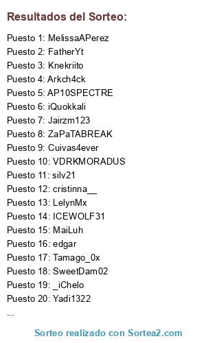 Lista de participantes: LelynMx , Tipillo , ARKTER_Bx , edgar , NobhY , Tati_4516 , ZaPaTABREAK , cristinna__ , SureySaysHi , WaterdyLOL , MaiLuh , Jairzm123 , HoneyDynamite , Nando FH , ChrisMNGames , Yuzuuhaa , Yair1782 , Sargosm , Cuivas4ever , Tamago_0x , JosuDaniYT , Yamil05bb , AngelGamer17 , Panflinas , AP10SPECTRE , Fierrito21kil , ELISAURIO06 , ARKATRAS777 , May_23 , Gerardfc27 , Nirmax7787 , Fede1905 , LucyPataFria , Knekriito , FatherYt , KwMarty , michixant , iQuokkali , silv21 , Campesina_89 , _iChelo , MelissaAPerez , F3N0Z , ICEWOLF31 , Elian_emma15090 , vicqusck , Anmolpro1138 , SwankestBand114 , idk_pat0 , S3_Studio , DarkAngelOvO1 , Yadi1322 , Arkch4ck , s0mnium13 , VDRKMORADUS , SweetDam02 , alvamazo , rufustwitch , abeluchi_127 , .