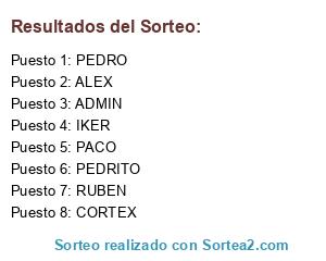 Lista de participantes: RUBEN, IKER, PACO, ALEX, CORTEX, PEDRO, ADMIN, PEDRITO.