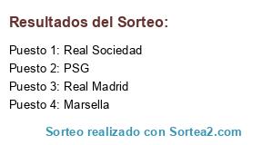 Lista de participantes: Real Madrid, PSG, Real Sociedad, Marsella.