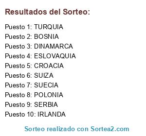 Lista de participantes: CROACIA, TURQUIA, ESLOVAQUIA, BOSNIA, SUIZA, POLONIA, IRLANDA, SUECIA, DINAMARCA, SERBIA.