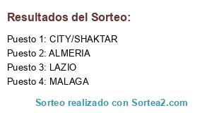 Lista de participantes: LAZIO, MALAGA, ALMERIA, CITY/SHAKTAR.