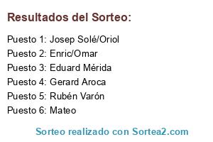 Lista de participantes: Eduard Mérida, Josep Solé/Oriol, Enric/Omar, Mateo, Gerard Aroca, Rubén Varón.
