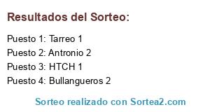 Lista de participantes: Bullangueros 2, Antronio 2, HTCH 1, Tarreo 1.