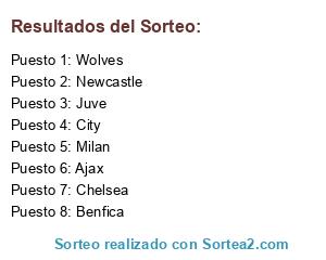 Lista de participantes: Benfica, Juve, Milan, Ajax, Wolves, City, Newcastle, Chelsea.