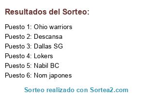 Lista de participantes: Lokers, Dallas SG, Ohio warriors, Nabil BC, Nom japones, Descansa.