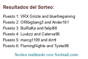 Lista de participantes: FlamingNights and Tyske88, Luukzz and Caterva96, VRX Griizle and bluefiregaming, ORIbigbang3 and Ander161, BuiRaKa and felipi88, marcg1109 and dirrtt.