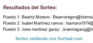 Resultados del sorteo: